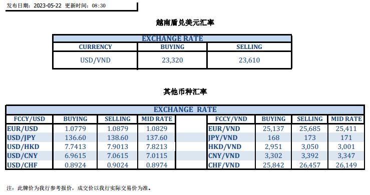 今日汇市 2023-05-22