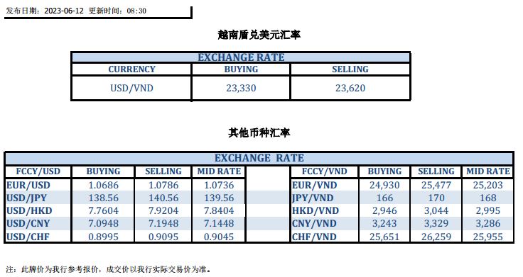 今日汇市 2023-06-12