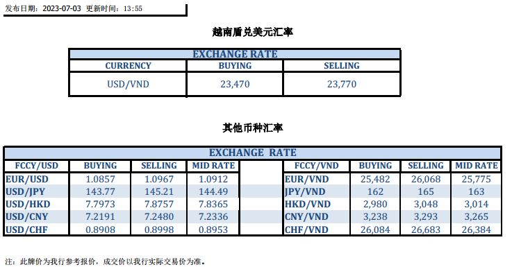 今日汇市 2023-07-03