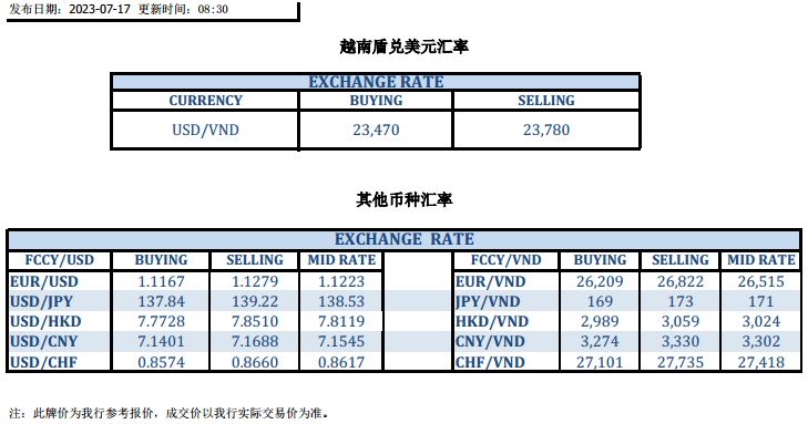 今日汇市 2023-07-17