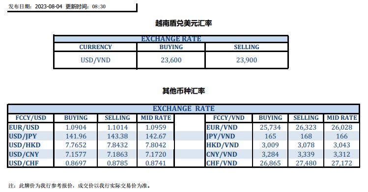 今日汇市 2023-08-04