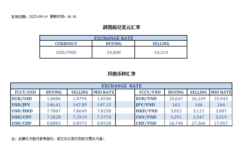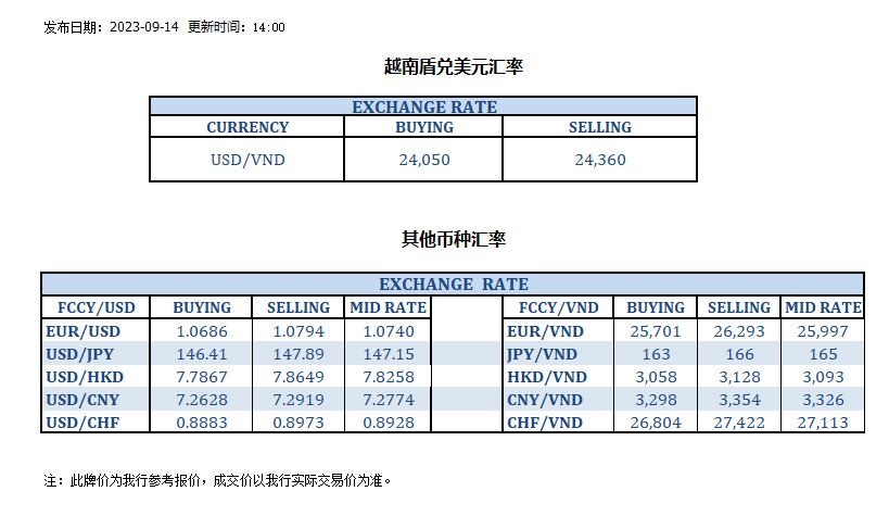 今日汇率 2023-09-14