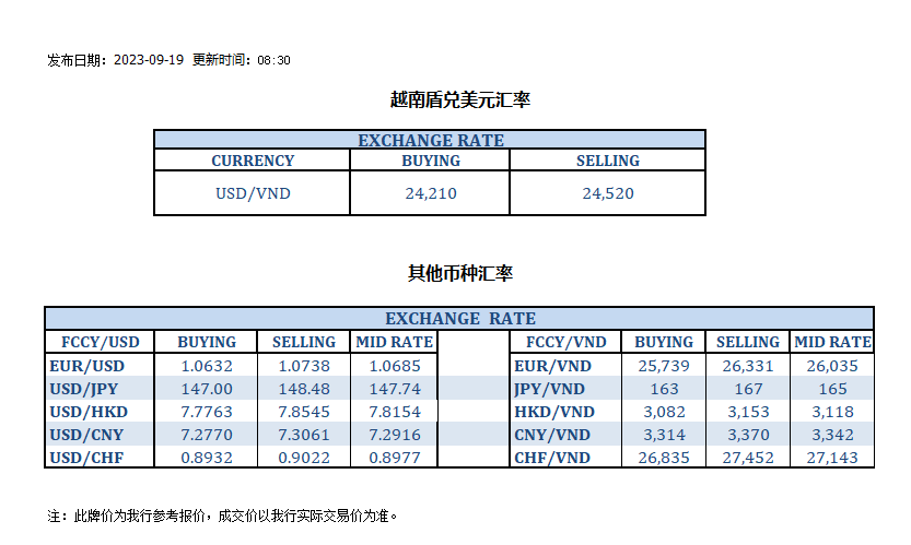 今日汇率 2023-09-19