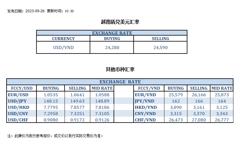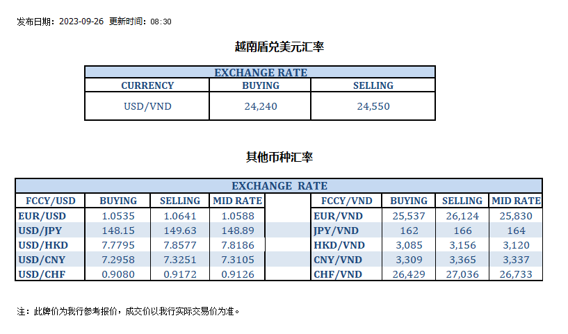 今日汇率 2023-09-26