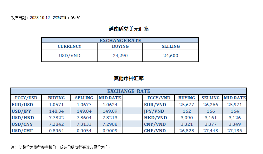 今日汇率 2023-10-12