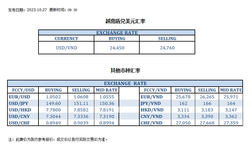 今日汇率 2023-10-27