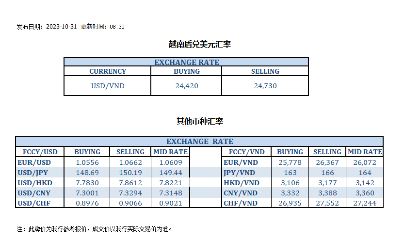 今日汇率 2023-10-31
