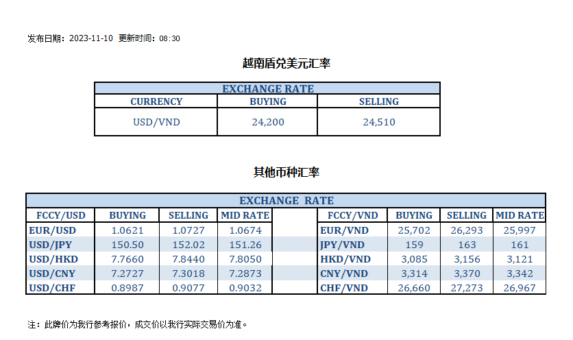 今日汇市 2023-11-10