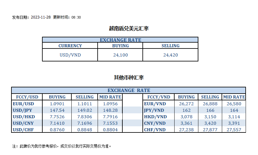 今日汇率 2023-11-28