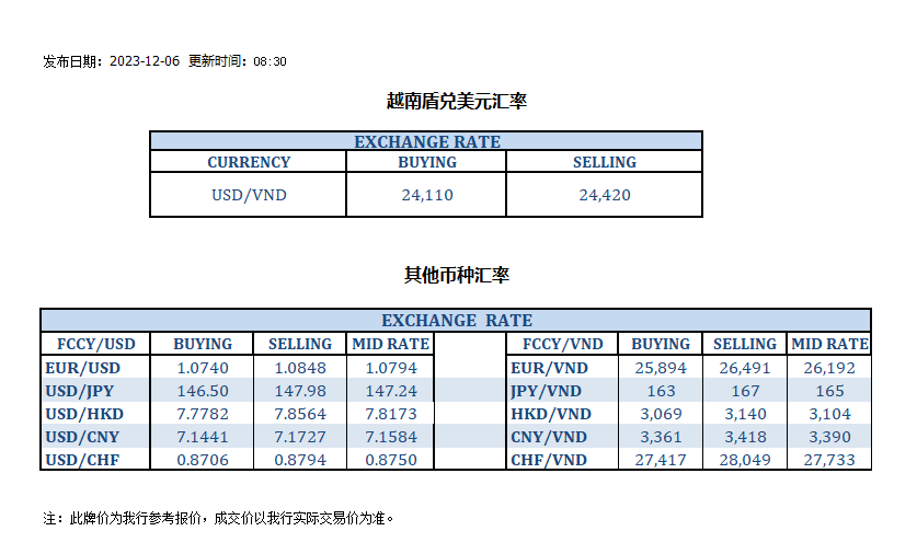 今日汇率 2023-12-06