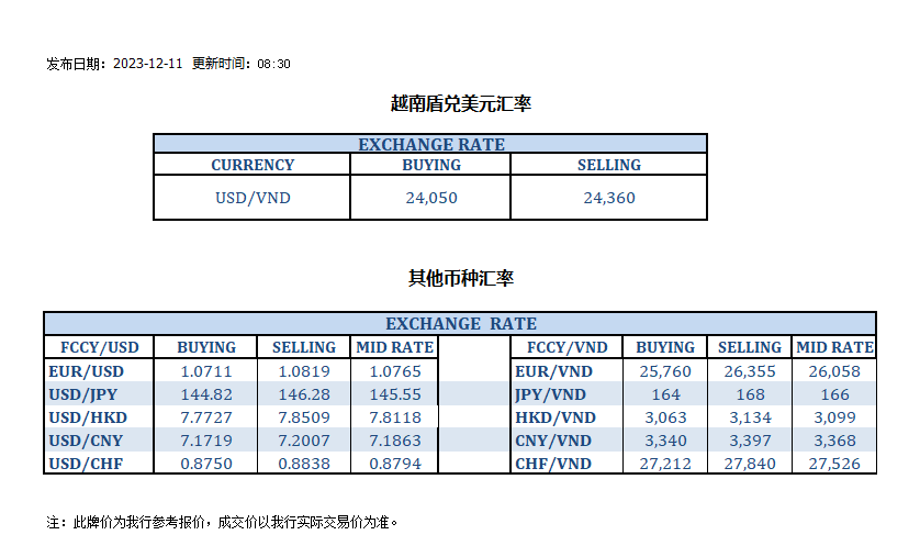 今日汇率 2023-12-11