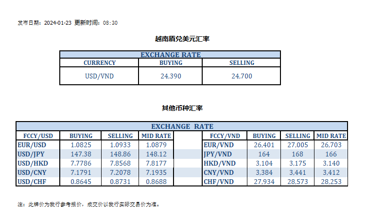今日汇率 2024-01-23