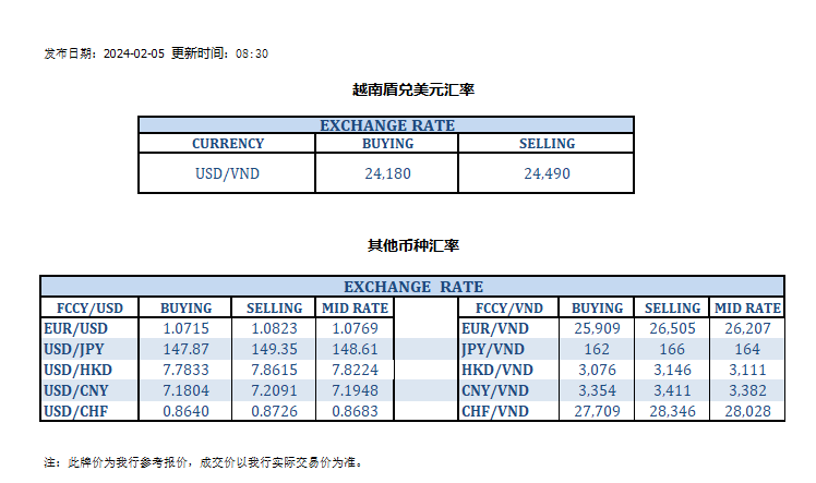 今日汇率 2024-02-05