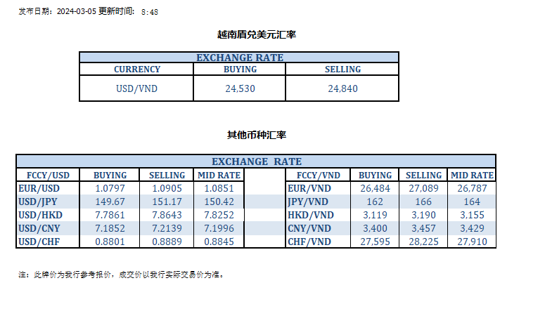 今日汇率 2024-03-05