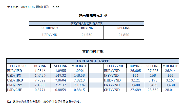 今日汇率 2024-03-07