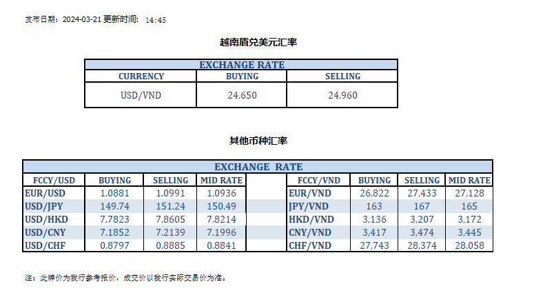 今日汇率 2024-03-21