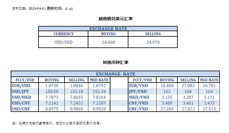 今日汇市 2024-04-01