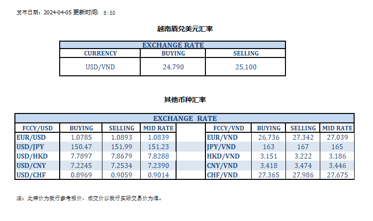 今日汇率 2024-04-05