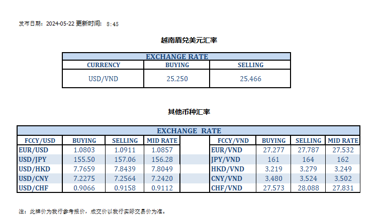 今日汇率 2024-05-22
