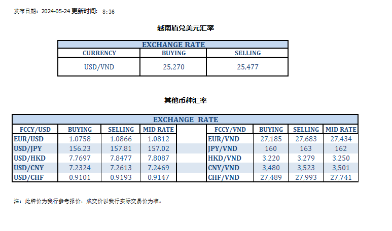 今日汇率 2024-05-24