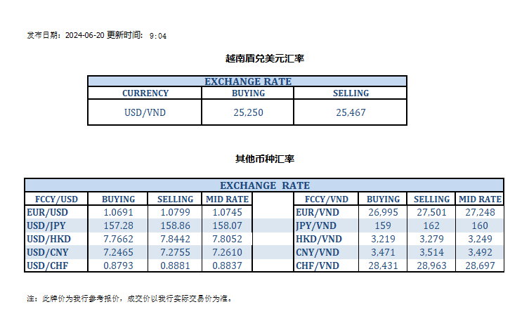 今日汇市 2024-06-20