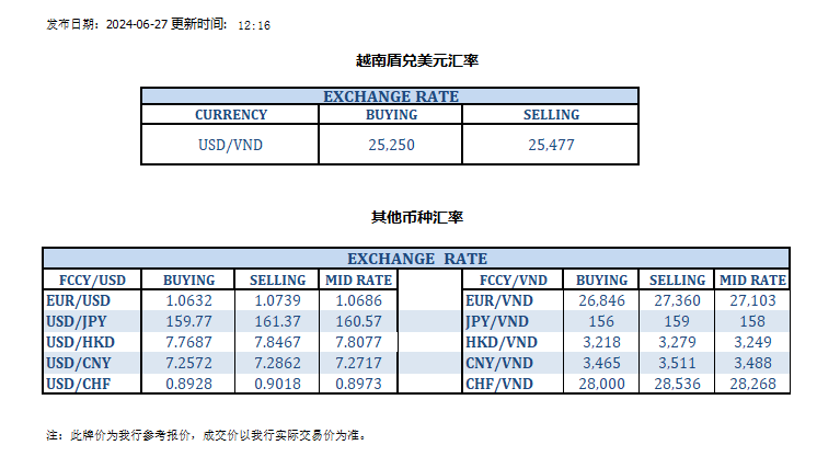 今日汇率 2024-06-27