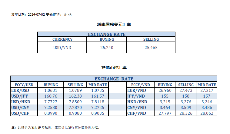 今日汇率 2024-07-02