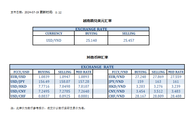 今日汇市 2024-07-19