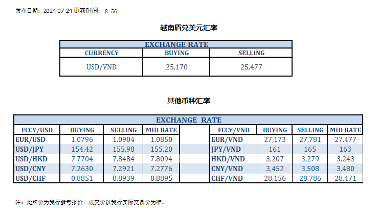 今日汇市 2024-07-24