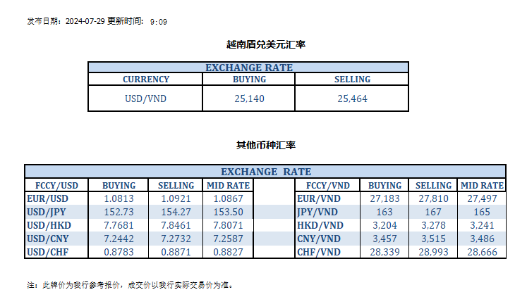 今日汇市 2024-07-29