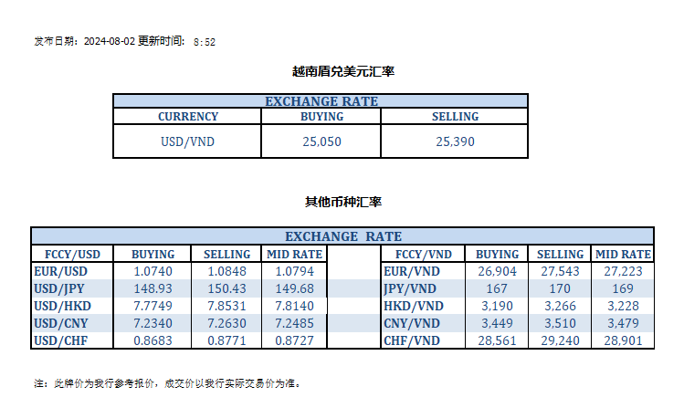 今日汇率 2024-08-02