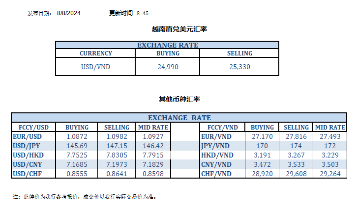 今日汇率 2024-08-08