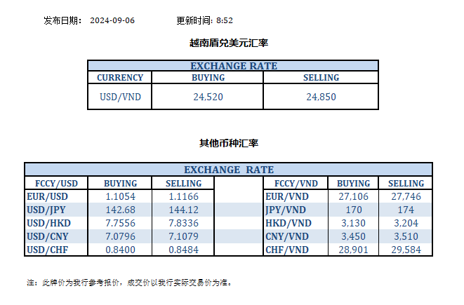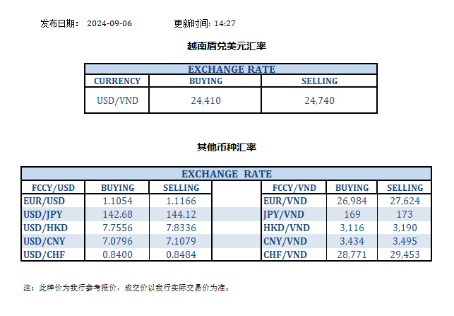 今日汇率 2024-09-06
