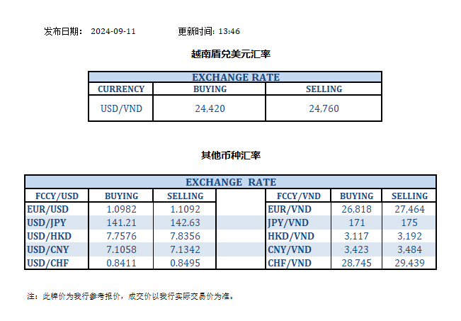 今日汇率 2024-09-11