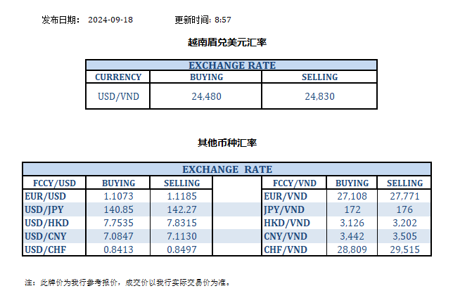今日汇率 2024-09-18