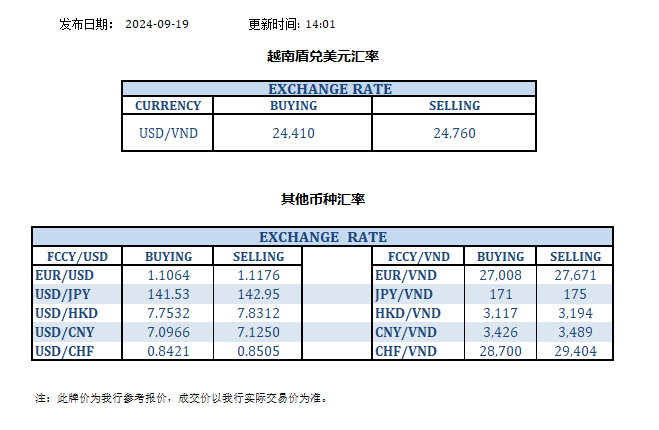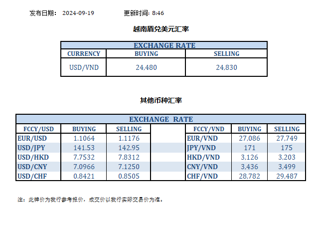 今日汇率 2024-09-19