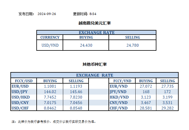 今日汇率 2024-09-26