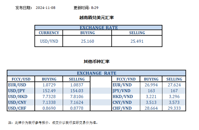今日汇率 2024-11-08