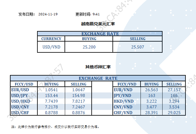今日汇率 2024-11-19