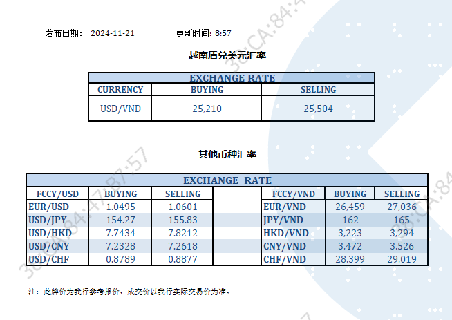 今日汇率 2024-11-21