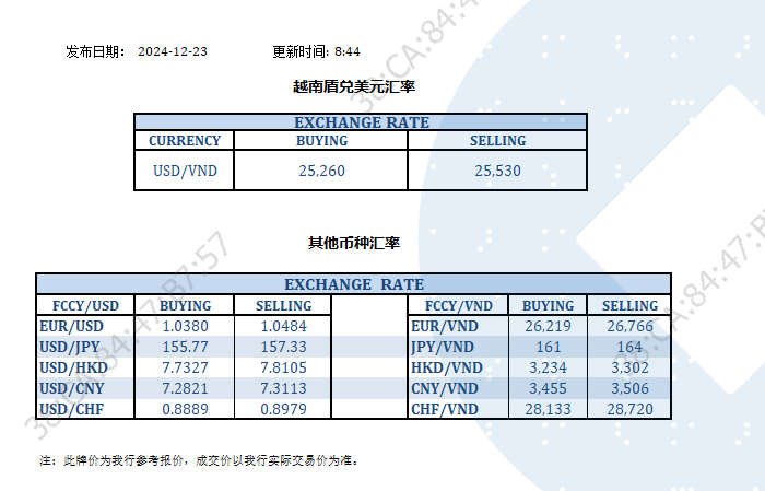 今日汇率 2024-12-23