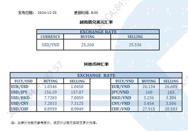今日汇率 2024-12-25