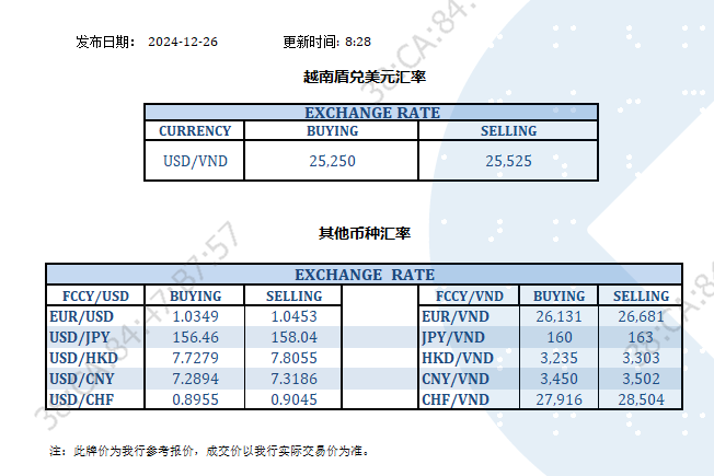 今日汇率 2024-12-26