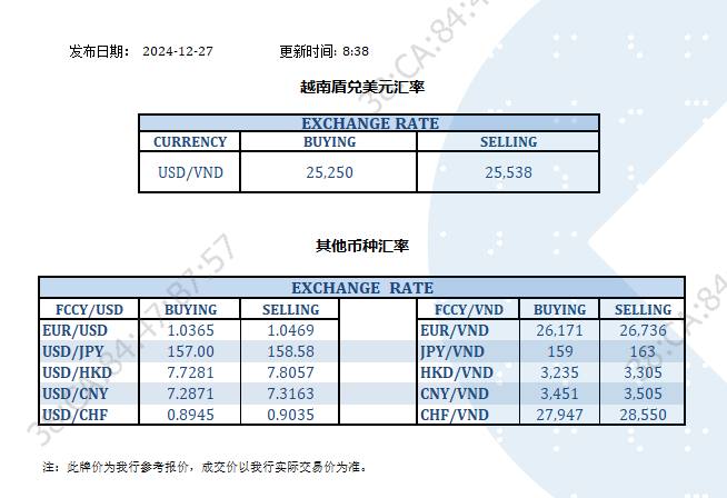 今日汇率 2024-12-27