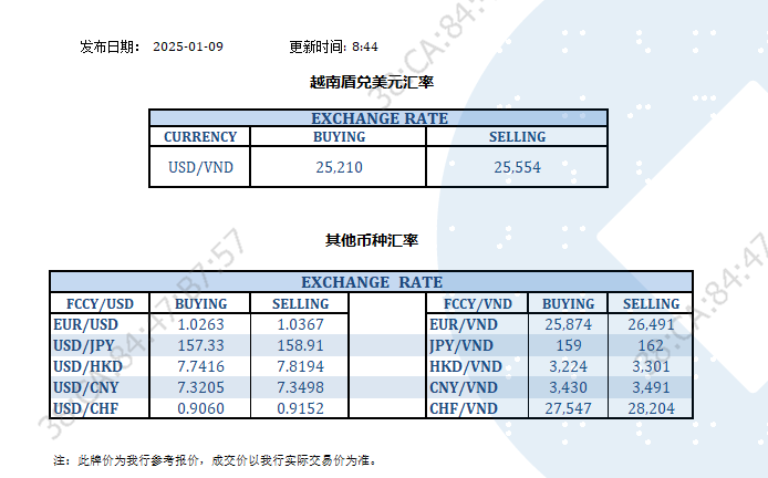 今日汇率 2025-01-09