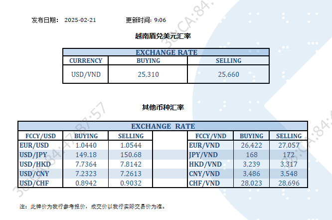 今日汇率 2025-02-21