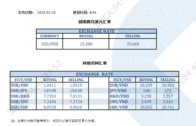 今日汇率 2025-02-25