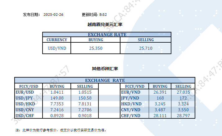 今日汇率 2025-02-26