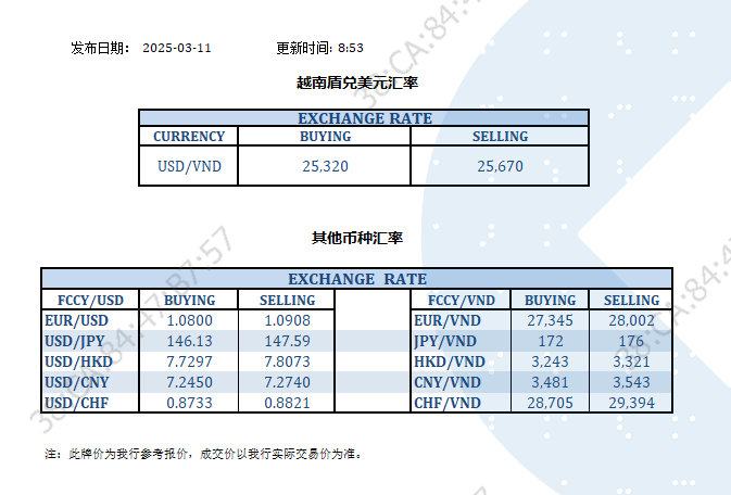今日汇率 2025-03-11