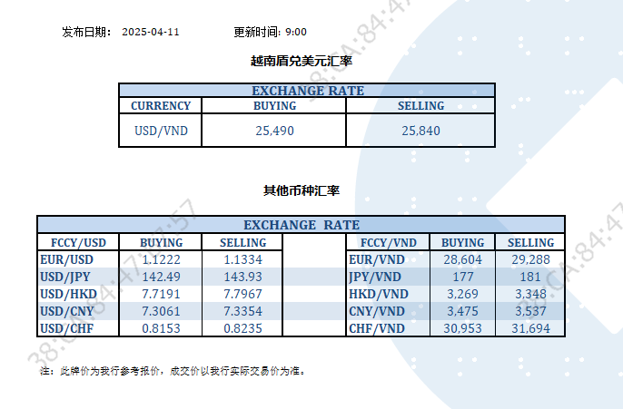 今日汇率 2025-04-11